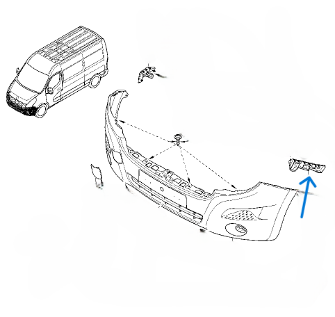 Držiak predného náraznika ľavý RENAULT MASTER / OPEL MOVANO 2010--Náhrada